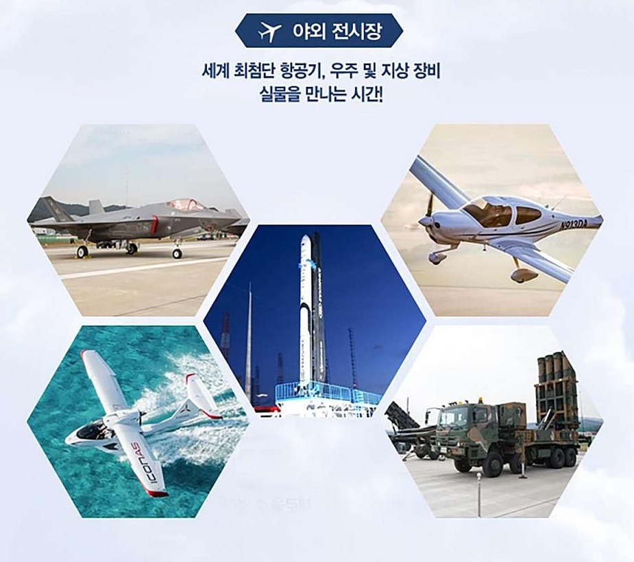 - 야외 전시장에는 세계 최첨단 항공기, 우주 및 지상 장비 실물을 볼 수 있습니다.