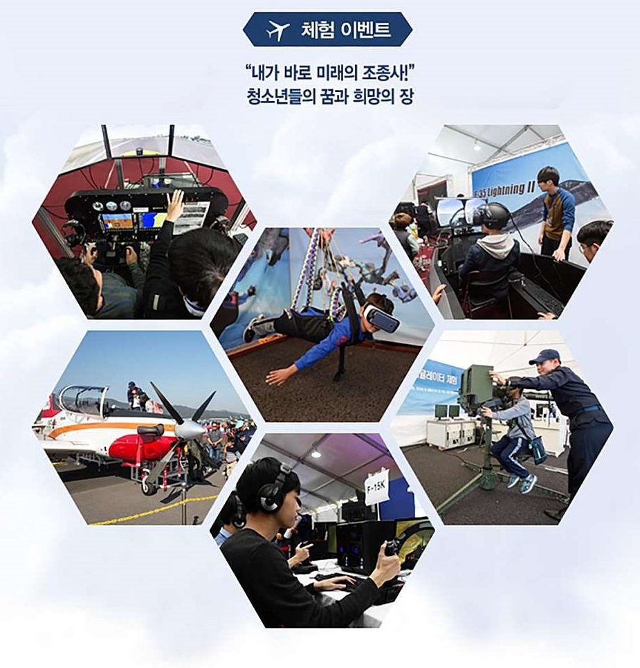 - 에어쇼로 대한민국 공군 특수비행팀인 블랙이글스의 에어쇼가 준비되어 있습니다. 그리고 올해는 호주 곡예비행팀인 폴 베넷의 에어쇼가 준비되어 있습니다.
